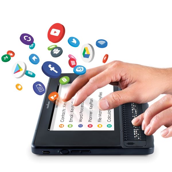 BrailleNote Touch Plus è compatibile con la maggior parte delle applicazioni, consente di usare YouTube, inviare email, condividere contenuti sui servizi Cloud, come DropBox e Google Drive.