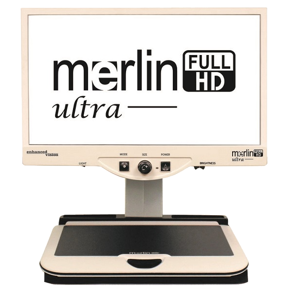 Merlin Full HD Ultra è un videoingranditore da tavolo con schermo da 22″ e telecamera Full HD, che permette un chiaro ingrandimento dei documenti cartacei fino a 60x.